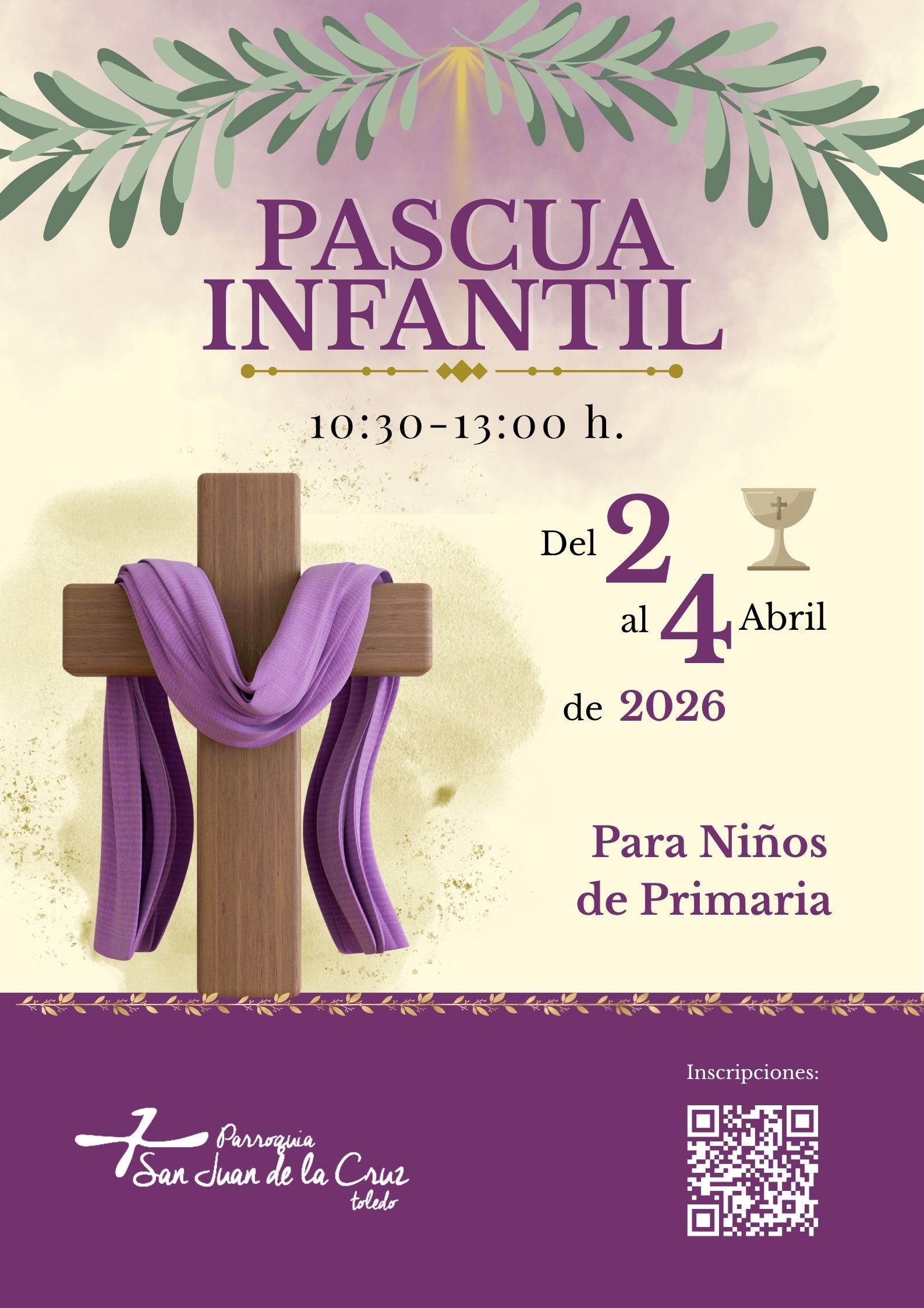 PASCUA INFANTIL 2026 Para niños de primaria. Fecha: del 2 al 4 de abril Horario: de 10:30 a 13:00 h. INSCRIPCIONES